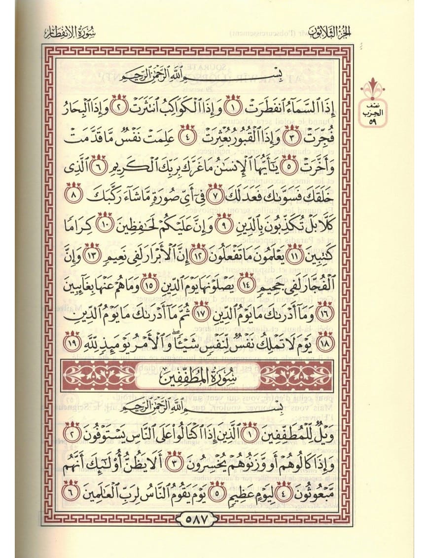القرآن الكريم وترجمته إلى اللغة الفرنسية لمعانيه (حجم كبير)